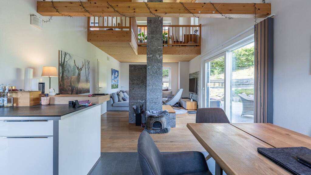 Hochwertige Einbauküche mit Arbeitsplatte in Stein und Miele Geräten * Fenster in3 Fachverglasung * Hebeschiebeelemente * Sichtdachstuhl * Wernig Wohnraumlüftungssystem * geschmackvolle Gartenbepflanzung * hochwertiges Interior * Einbauschränke in Altholz und mit Leder bespannt * moderne Holztreppe* Eichendielen * offener Kamin * Galerie mit Sichtholzuntersicht * Badewanne *Regendusche * Sauna * Carport und Garage...........