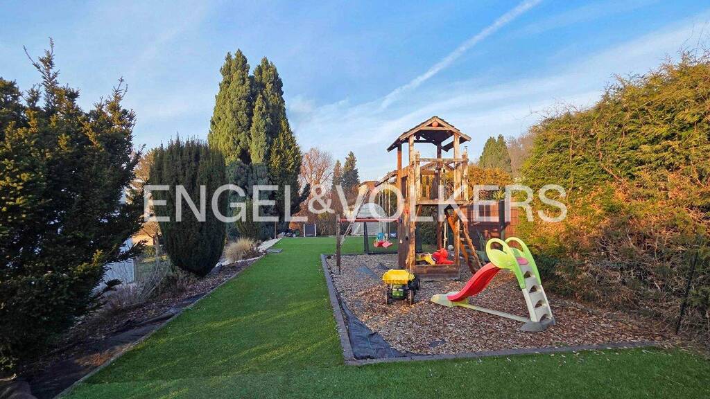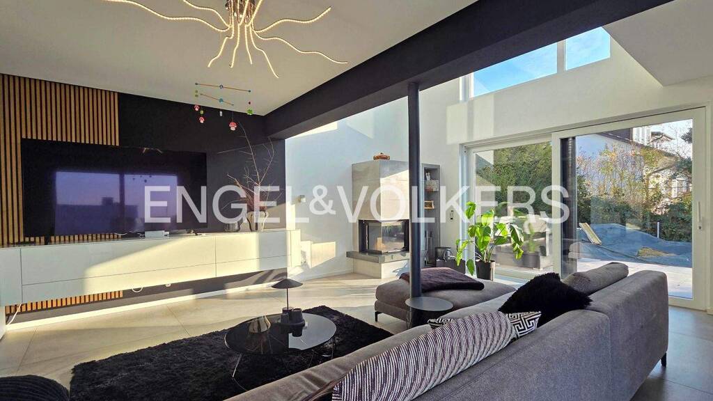 Dieses freistehende und exklusiv ausgestattete Einfamilienhaus vereint großzügiges Wohnen, moderne Architektur und eine hochwertige Ausstattung in begehrter, ruhiger Lage. Ursprünglich im Jahr 1968 erbaut, wurde die Immobilie zwischen 2015 und 2017 umfassend saniert und zugleich aufwendig erweitert. Dabei entstand ein repräsentatives Zuhause mit einer Wohnfläche von rund 332 m² (exkl. Terrassenbereiche), das zeitgemäßen Wohnkomfort mit stilvoller Großzügigkeit verbindet. Auf einem ca. 1.169 m² großen Grundstück gelegen, präsentiert sich das Haus mit einem weitläufigen Garten sowohl vor als auch hinter dem Gebäude. Verschiedene Terrassenbereiche sowie eine attraktive Dachterrasse schaffen zahlreiche Möglichkeiten, sonnige Stunden im Freien zu genießen und bieten zugleich viel Privatsphäre. Das Haus erstreckt sich über drei Etagen und verfügt über insgesamt acht Zimmer sowie eine elegante Galerie, die dem Innenraum eine offene und lichtdurchflutete Atmosphäre verleiht. Herzstück des Wohnbereichs ist die großzügige, offen gestaltete Küche mit hochwertigen Markengeräten, die fließend in den Wohn- und Essbereich übergeht und ein modernes, kommunikatives Wohnerlebnis schafft. Ein stilvoller Kaminofen sorgt zusätzlich für eine behagliche Atmosphäre. Die Immobilie bietet drei geschmackvoll gestaltete Badezimmer sowie ein separates Gäste-WC. Mehrere Abstellräume und Kellerräume sorgen für komfortablen Stauraum und funktionale Ergänzungen im Alltag. Auch in technischer Hinsicht überzeugt das Haus mit einer hochwertigen Ausstattung. Edle Holzdielen und großformatige Fliesen unterstreichen den exklusiven Charakter der Räume. Eine energieeffiziente Wärmepumpe in Kombination mit einer Fußbodenheizung sorgt für angenehmes Raumklima, während dreifach verglaste Fenster und elektrische Raffstores sowohl Komfort als auch Energieeffizienz bieten. Über ein modernes Smart Panel lassen sich verschiedene Funktionen des Hauses komfortabel steuern. Ergänzt wird dieses außergewöhnliche Angebot durch eine Photovoltaikanlage sowie eine großzügige Doppelgarage, die ausreichend Platz für Fahrzeuge und zusätzlichen Stauraum bietet. Insgesamt präsentiert sich diese Immobilie als stilvolles und modernes Familienhaus mit großzügigen Flächen, hochwertiger Ausstattung und viel Privatsphäre - ideal für anspruchsvolle Käufer, die ein repräsentatives Zuhause in ruhiger und gefragter Lage suchen. Wir freuen uns auf Ihre Anfrage und stehen Ihnen für weitere Informationen gerne zur Verfügung.