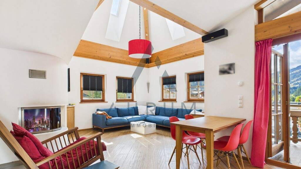 Die großzügig geschnittene Wohnung beeindruckt mit einem hellen, offenen Wohnraum, der Wohnen, Essen und Kochen harmonisch verbindet. Der gemütliche Kamin sorgt für eine behagliche Atmosphäre. Drei Balkone eröffnen Ihnen zu jeder Tageszeit traumhafte Ausblicke auf die umliegende Berglandschaft.