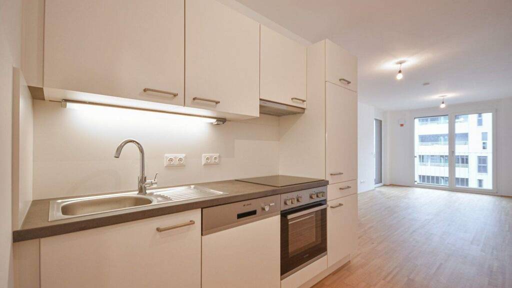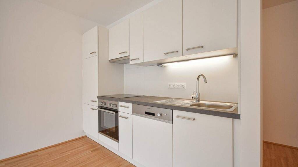 Zur Vermietung gelangt eine 1-Zimmer Wohnung in urbaner Atmosphäre. Die helle Wohnung verfügt über einen Vorraum, ein modernes Badezimmer mit Dusche und Waschmaschinenanschluss, ein separates WC, einen großzügigen Wohnbereich mit einer modernen, offenen Küche. Die 3-fach-verglasten Fenster sind mit elektrischer Außenbeschattung ausgestattet. Die Wohnräume sind mit schönem Parkettboden ausgestattet und die Nassräume mit Fliesen verlegt.