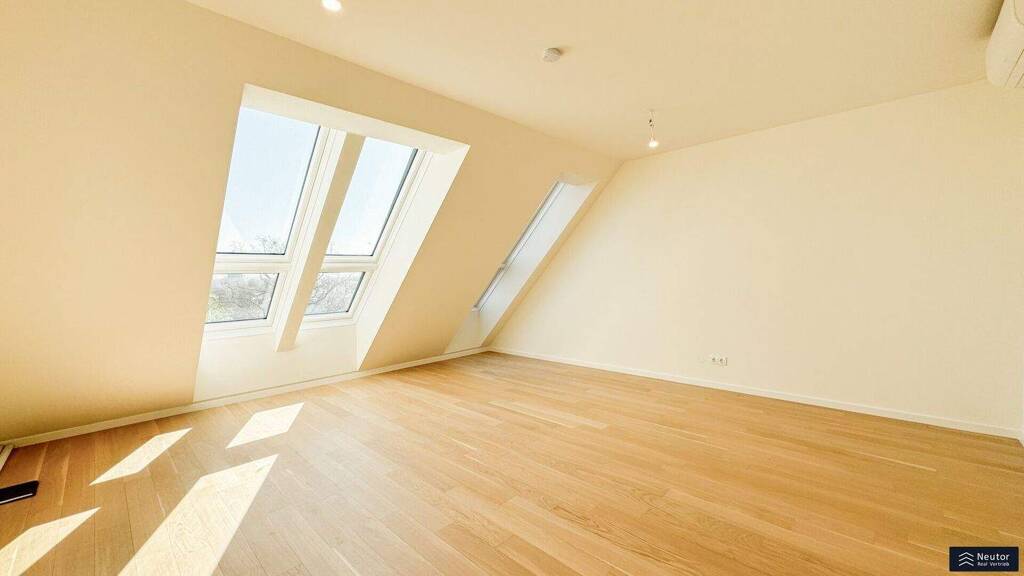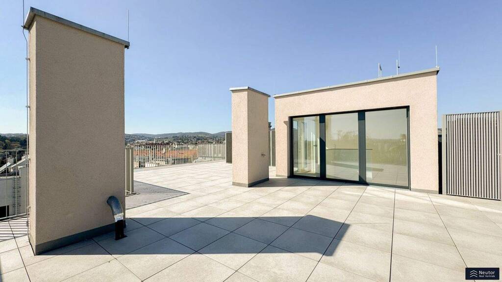 Diese großzügige Maisonette-Wohnung erstreckt sich über zwei Ebenen und beeindruckt mit einer durchdachten Raumaufteilung, hochwertiger Ausstattung und einem Wohngefühl der Extraklasse - ein Rückzugsort mitten in der Stadt, der Raum für Individualität, Ruhe und gehobenen Lebensstil schafft. Bereits beim Betreten der Wohnung empfängt Sie eine klare architektonische Linie, kombiniert mit stilvollen Details und einer einladenden Offenheit. Das Herzstück bildet die lichtdurchflutete Wohnküche mit über 50 m², deren offene Gestaltung vielseitige Nutzungsmöglichkeiten bietet - ob als geselliger Treffpunkt, stilvoller Essbereich oder ruhige Loungezone. Große Fensterflächen sorgen für ein helles Ambiente und verbinden den Innenraum nahtlos mit der angrenzenden Terrasse, die zum Frühstück im Freien oder entspannten Sommerabenden einlädt. Die drei Schlafzimmer der Wohnung sind großzügig angelegt und bieten mit ihren klaren Linien und der optimalen Belichtung Rückzugsorte mit Charakter. Eines der Zimmer bietet direkten Zugang zu einer eigenen Terrasse - ein seltenes Detail, das Komfort und Privatsphäre auf elegante Weise vereint. Gleich drei hochwertig ausgestattete Bäder - darunter ein Bad en suite - sowie ein separates Gäste-WC sorgen für höchsten Wohnkomfort, sowohl für Familien als auch für Gäste. Ergänzt wird das Raumangebot durch zwei praktische Abstellräume und einen Hauswirtschaftsbereich mit Waschmaschinenanschluss. Ein architektonisches Highlight erwartet Sie auf der oberen Ebene: Die über 150 m² große Dachterrasse bietet nicht nur absolute Privatsphäre, sondern auch einen beeindruckenden Panoramablick über die Stadt. Ob Urban Gardening, Sonnenlounge oder Outdoor-Dining - hier entsteht ein einzigartiger Lebensraum unter freiem Himmel, der urbanes Lebensgefühl mit Freiheit und Ruhe verbindet.