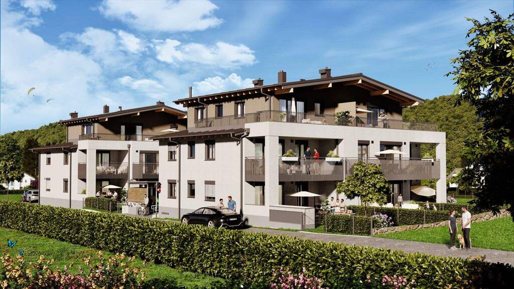 Am Miglweg in Elsbethen, südlich von Salzburg, entstehen zwei Mehrfamilienhäuser mit insgesamt 15 Eigentumswohnungen im Projekt "Wohnen nahe Goldenstein". Die durchdachte Architektur kombiniert klare Linien mit warmen Details und viel Grün, wodurch ein harmonisches Gesamtbild entsteht. Dank der Süd-Ausrichtung der kompakten Baukörper genießen die Wohnungen lange Sonnenstunden und eine freundliche Atmosphäre. Die Massivbauweise garantiert Stabilität und Wertbeständigkeit, während die Photovoltaikanlage und thermisch getrennte Balkone für eine nachhaltige Energienutzung sorgen. Die Tiefgarage mit beheizter Rampe, attraktive Außenbereiche, ein Spielplatz und Fahrradstellplätze runden das Angebot ab. Die hochwertigen Dachgeschosswohnungen beeindrucken mit bis zu 3,60 m Raumhöhe und 2,20 m hohen Innentüren, die für ein großzügiges Raumgefühl sorgen.