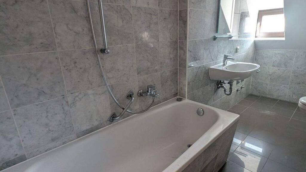 Das Badezimmer ist mit einer Badewanne ausgestattet und bietet genügend Platz für alle täglichen Bedürfnisse. Zusätzlich stehen ein praktischer Abstellraum sowie eine großzügige Diele zur Verfügung, die den Wohnkomfort weiter erhöhen.
