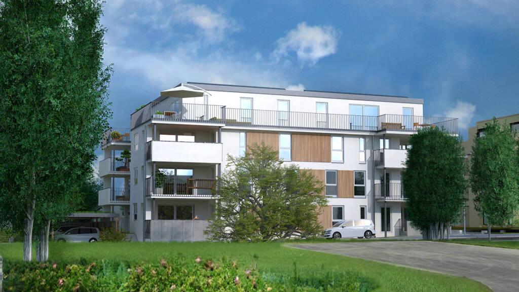 Dieses Neubauvorhaben besteht aus einem eleganten Mehrfamilienhaus mit 11 Wohnungen. Im Haus liegen die Wohnungsgrößen zwischen ca. 77 und 126 Quadratmeter und sind aufgeteilt in 2, 3 und 4-Zimmer-Wohnungen. Es sind jeweils drei Wohnungen pro Etage vom Erdgeschoss bis ins 2. Obergeschoss angeordnet und das Dachgeschoss verfügt zukünftig über 2 Penthäuser. Die Bezugsfertigkeit ist für Ende 2026 vorgesehen. Die Kaufpreise bewegen sich je nach Wohnungsgröße und Etage zwischen 348.800,00 € und 628.100,00 €. Die Carport-Stellplätze kosten 19.000,00 € für die nach DIN konzipierten Größen und die Kaufpreise der Außenstellplätze betragen jeweils € 5.000,00 . Sie können ggf. für Ihre Besucher zusätzlich einen Außenstellplatz anmieten.