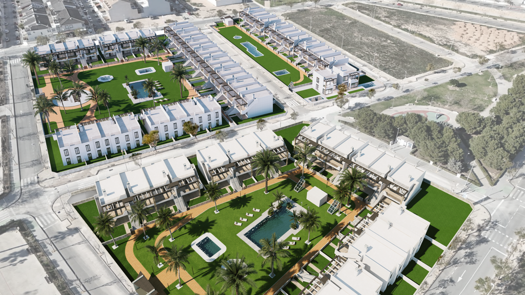 Moderne Wohnungen in Strandnähe Entdecken Sie diese exklusive Wohnanlage in Pilar de la Horadada, die Bungalows und Doppelhaushälften weniger als 2 km vom Strand entfernt bietet. Diese Wohnungen wurden für Komfort und Stil entworfen und sind eine ausgezeichnete Gelegenheit, das Leben an der Costa Blanca zu genießen.