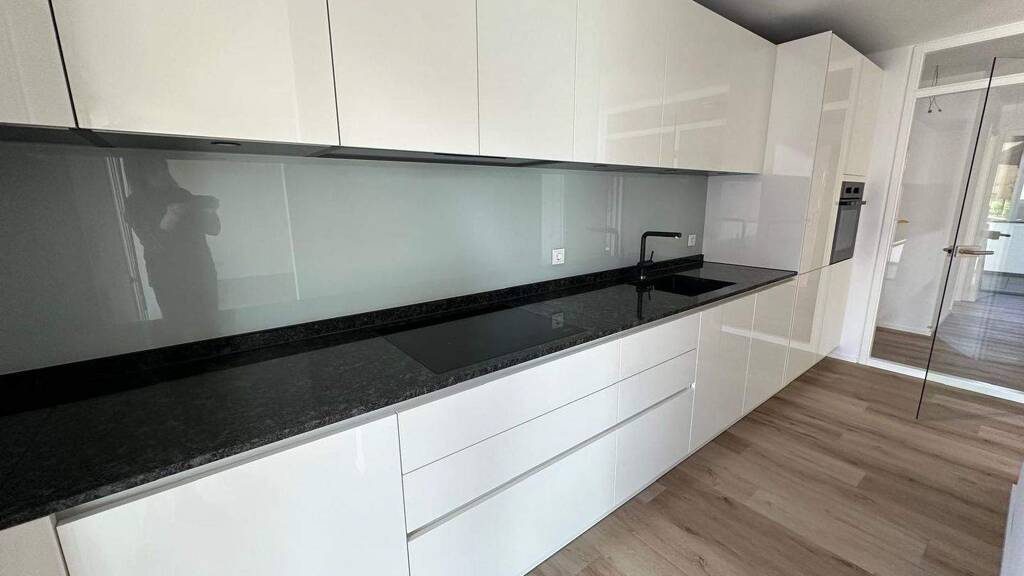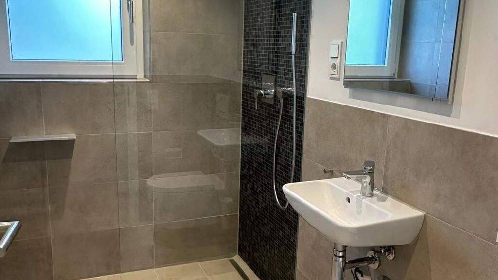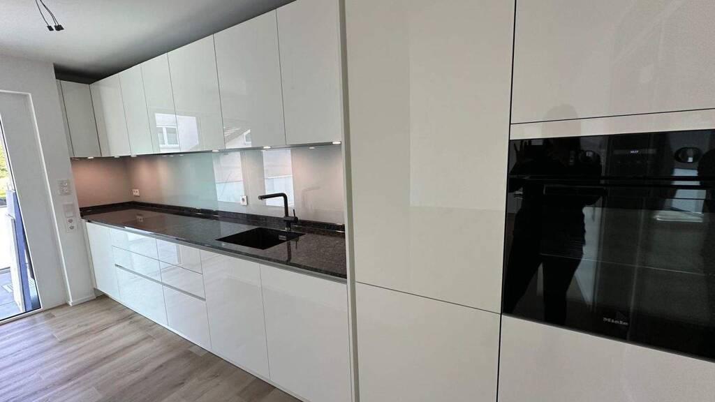 Diese großzügige 3 Zimmer-Wohnung befindet sich im Erdgeschoss eines 7 Parteien Hauses. Zuzüglich zur Terrasse haben Sie hier noch einen Gartenbereich, welchen Sie mit Ihrer Familie nutzen können. Gleich hinter der Eingangstüre der Wohnung ist auf der rechten Seite das große Gästebad mit bodengleicher Dusche. Das Bad ist mit Mosaikfliesen im Duschbereich und großformatigen Fliesen an Wand und Boden ausgestattet. Gleich neben dem Badezimmer ist das geräumige Schlafzimmer. Im über 35 m² großen Wohn- und Essbereich haben sie jede Menge Platz. Die hochwertige Einbauküche ist mit einer weißen Hochglanzfront, Granitarbeitsplatte und Miele Einbaugeräten ausgestattet. Der Wohnraum ist durch die große Verglasung mit der Schiebetüre zur Terrasse und dem Gartenbereich sehr hell. Von der Mitte der Wohnung kommen Sie zum Abstellraum, dem großzügigen Badezimmer und dem 2. Schlafraum.