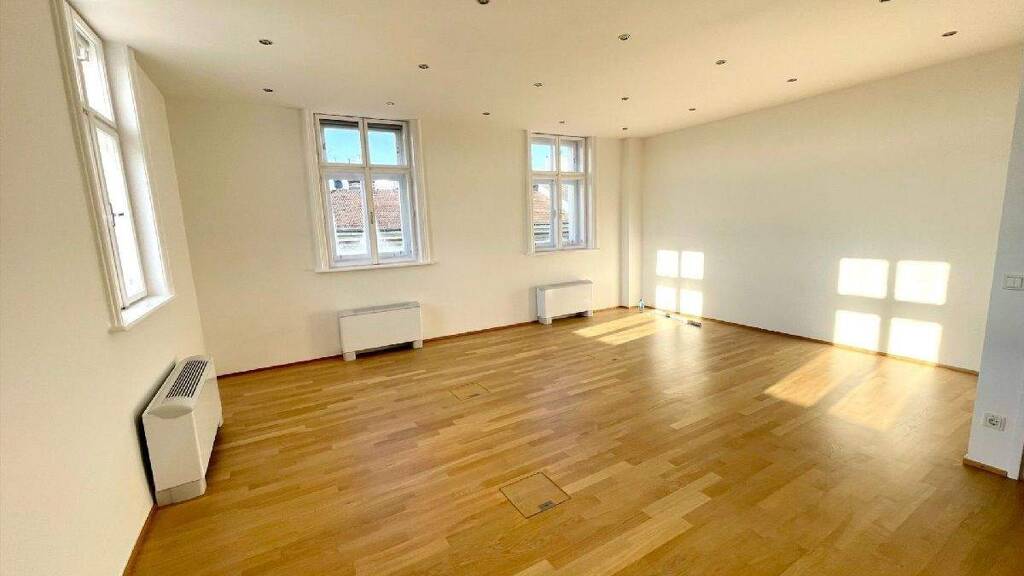In diesem generalsanierten Bürogebäude gelangt eine außergewöhnliche Fläche von ca. 691 m² im 5. Stock zur Vermietung. Sie genießen hier die Ruhe und das besondere Licht hoch über dem Straßenniveau. Ein moderner Lift bringt Sie und Ihre Gäste komfortabel direkt in Ihr Refugium.