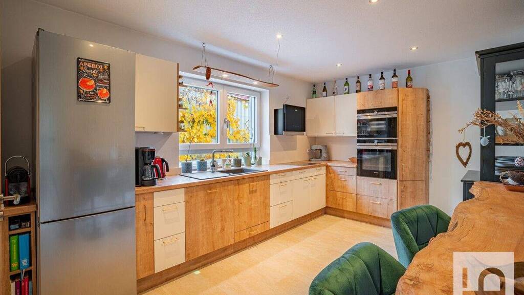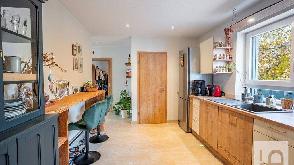 Kommen Sie rein in diese rundum gelungene Doppelhaushälfte und fühlen Sie sich gleich wohl und geborgen! Der Eingangsbereich ist freizügig gestaltet und bietet viel Platz. Hier befindet sich neben dem Gäste-WC auch der Zugang zum großen Hauswirtschaftsraum mit dem Heiz- und Technikraum. Die offen gestaltete, gemütliche Küche wird durch eine separate Speisekammer ergänzt. Das lichtdurchflutete Wohn- und Esszimmer ist wunderbar geräumig und bietet für einen großen Esstisch und eine Wohnlandschaft genug Spielraum. Viel Licht kommt durch die großen Schiebe-Hebetüren, die den direkten Zugang auf die Terrasse und den Garten ermöglichen. Ein Schwedenofen im Wohnbereich sorgt für zusätzliche, wohlige Wärme.