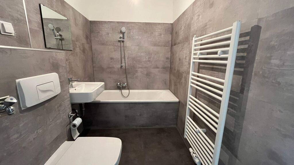 Das Badezimmer ist funktional und geräumig. Es verfügt über eine Wanne, ein WC und ein Waschbecken sowie einen Waschmaschinenanschluss, sodass Sie alle Annehmlichkeiten für Ihren täglichen Bedarf vorfinden. Ein praktischer Kellerraum gehört ebenfalls zur Wohnung und bietet zusätzlichen Stauraum für Saisongegenstände oder andere Utensilien. Der Dachboden kann für das Trocknen der Wäsche genutzt werden.