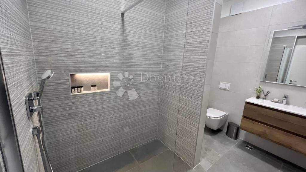Exklusive Penthouse-Wohnung in einem modernen Neubau in Trogir (Saldun) mit groĂźer Dachterrasse und Meerblick, nach Westen ausgerichtet.