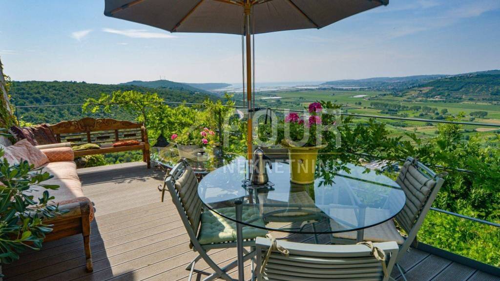 Die Lage ist ruhig, der Ausblick von der Terrasse spektakulär - der Blick reicht bis nach Italien, in die Dolomiten und aufs Meer!