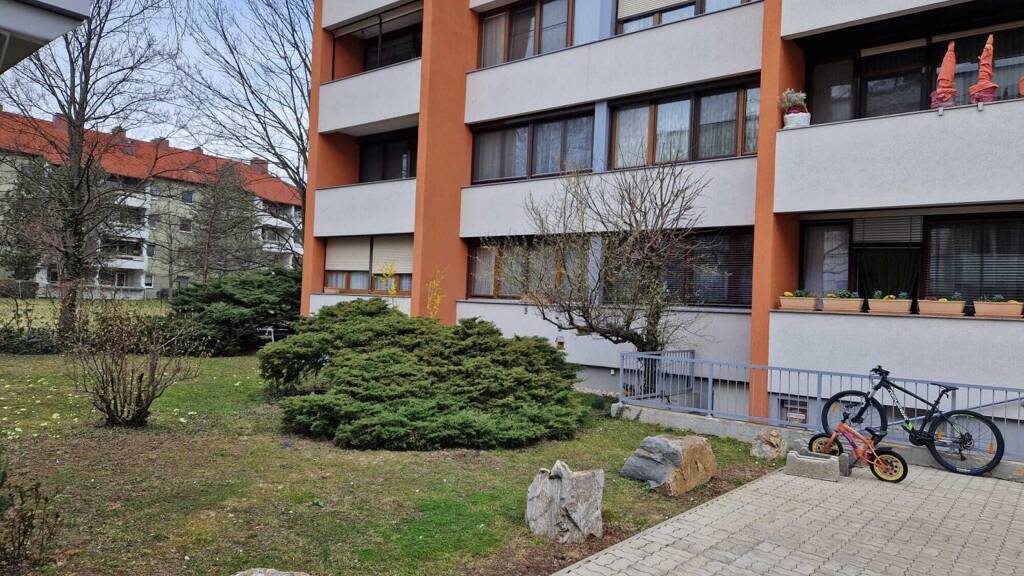 Vom zentralen Vorraum gelangt man in den Schlafbereich und in die Küche, die einen herrlichen Ausblick in den grünen und äußerst ruhigen Garten ermöglichen. Neben dem separaten WC befindet sich das geräumige Badezimmer mit einer modernen Glasdusche. Das großzügig geplante Wohnzimmer ist das Herzstück der Wohnung, es bietet viel Platz zum gemütlichen Zusammenkommen. Ein Schlafzimmer und ein Abstellraum stehen Ihnen ebenfalls zur Verfügung.