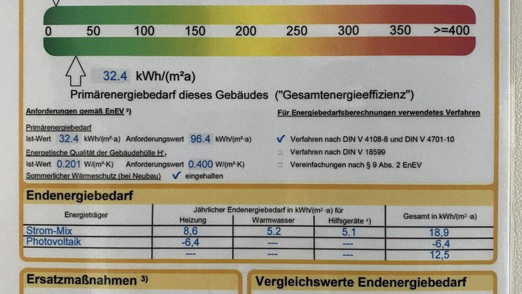 - Primärenergiebedarf: 32,4 kWh/(m²·a)
