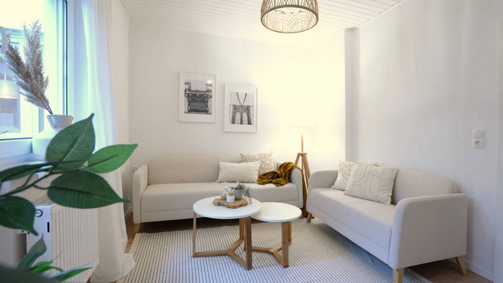 Diese gemütliche Wohnung befindet sich im Erdgeschoss eines Zweifamilienhauses und wurde 2026 liebevoll renoviert. Das innenliegende Treppenhaus führt Sie in den Eingangsbereich der ca. 50 m² großen Wohnung. Sie gelangen zuerst in den Flur, der Ihnen Zugang zum modernen Badezimmer, der Küche und dem Schlafzimmer gewährt. Das Wohnzimmer mit Zugang zur Terrasse ist über die Küche erreichbar.