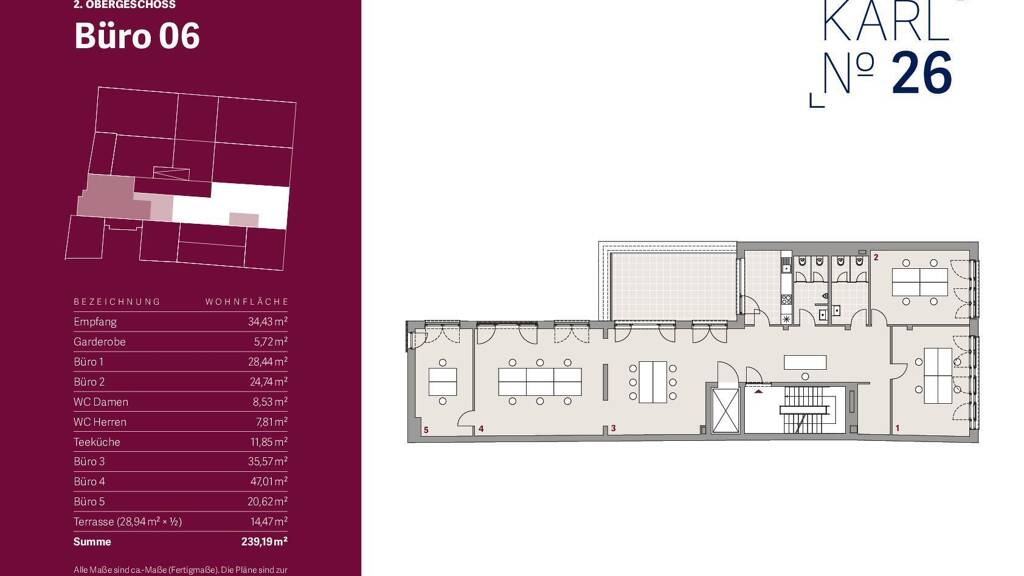 Zusätzlich trägt die ca. 28,94m² große Außenterrasse, die sowohl von der Küche, als auch vom Großraumbüro betreten werden kann und ideal für Firmenveranstaltungen ist auch für das Wohlbefinden Ihrer Mitarbeiter bei.