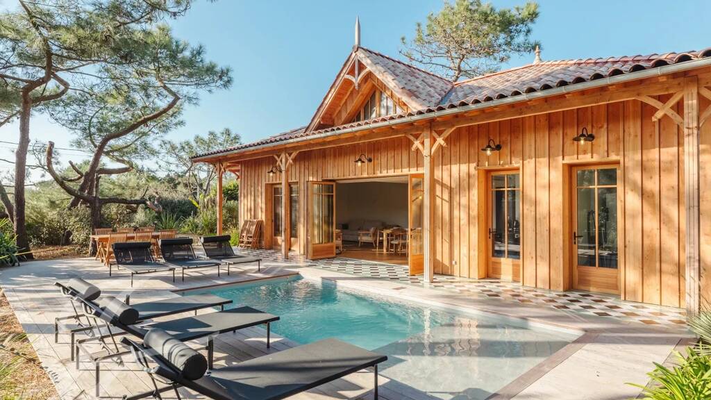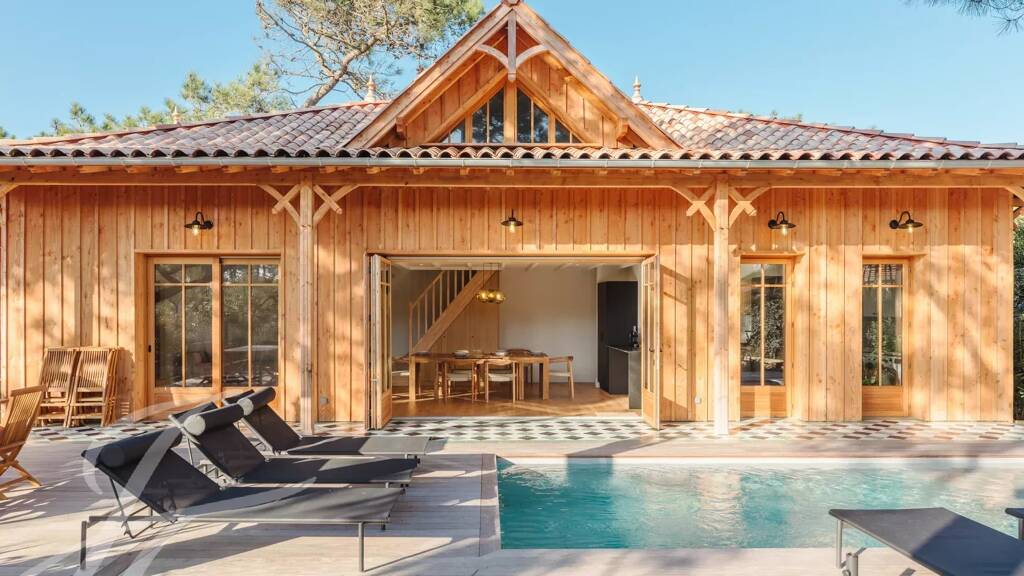 Der lichtdurchflutete Wohnbereich öffnet sich zu einem schönen, bewaldeten Garten, der die Gäste in eine geschützte Naturlandschaft eintauchen lässt. Die Außenbereiche sind sorgfältig für gesellige Momente gestaltet: Entspannen am beheizten Pool, spannende Boule-Partien oder unvergessliche Abendessen, zubereitet in der Sommerküche.