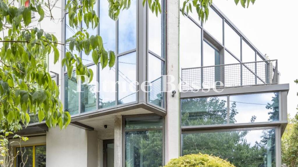On a hill, in a residential area of the "garden city", the streets wind their way gradually to the front of the property. Once past the entrance gate, the house is still hidden from view, overlooking a 553 m² wooded, fully walled garden with automatic watering system. The original building dates from 1930 and was extended 10 years ago with a clever glass and steel extension, emphasising the inextricable link between the house and its leafy surroundings. The designers of this vast conversion sought to transform the property into a unique place, taking advantage of the major works to insulate the walls and roof to achieve an excellent energy performance.