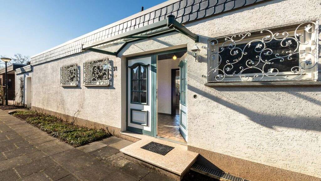 In herrlich ruhiger Feldrandlage präsentiert sich dieser Atriumbungalow mit außergewöhnlich viel Privatsphäre und einem geschützten Wohnambiente. Auf ca. 123 m² Wohnfläche verteilen sich drei gut geschnittene Zimmer, die vielfältige Gestaltungsmöglichkeiten eröffnen.