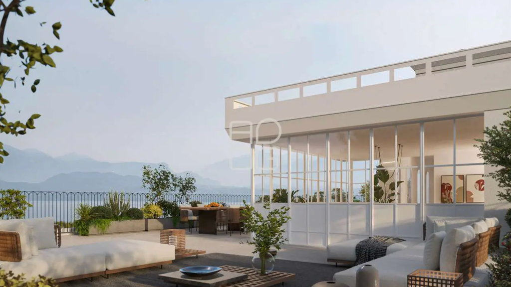 In den obersten Etagen dieses Gebäudes mit Gemeinschaftspool und Aufzug, das aus 20 Wohneinheiten besteht, bieten wir das Juwel der Villa Olympia zum Verkauf an: die Wohneinheit Nr. 20. Das Penthouse erstreckt sich über die gesamte vierte, fünfte und sechste Etage. Mit einer Innenfläche von über 210 m² verfügt die Wohnung über zwei Wohnbereiche, vier Schlafzimmer und fünf Badezimmer. Die über 350 m² großen Terrassen dominieren die Landschaft des Gardasees und bieten einen einzigartigen Ausblick, der von der Halbinsel Sirmione bis zum Gipfel des Monte Baldo reicht. Da die Wohnung auf allen vier Seiten völlig frei ist, kann das natürliche Licht jeden Raum durchdringen und bietet einen freien Blick nach allen Seiten. Der Eingang befindet sich im dritten Stock, von dem aus man sofort in die Hauptebene im vierten Stock gelangt, wo sich der wichtigste Raum der Immobilie befindet, das fast 60 m² große Wohnzimmer mit offener Küche und Zugang zur ersten Terrasse mit Blick auf den See. Im Schlafbereich befinden sich das Hauptschlafzimmer mit eigenem Bad und begehbarem Kleiderschrank, zwei weitere Doppelzimmer, von denen eines Zugang zur zweiten Terrasse auf der Rückseite hat, ein Einzelzimmer, drei Badezimmer und ein Abstellraum. Die spektakuläre Innentreppe führt in den fünften Stock, der für das zweite, intimere und gemütlichere Wohnzimmer vorgesehen ist, das von zwei großen Terrassen umgeben ist und über ein Gäste-WC verfügt. Von hier aus gelangen wir in die letzte Etage dieses architektonischen Juwels, den sechsten Stock, der sich durch das romantischste und reizvollste Element der gesamten Wohnung auszeichnet: den Turm mit atemberaubendem Blick auf den Gardasee. Das Anwesen wird durch eine Doppelgarage und einen Keller im Untergeschoss sowie zwei weitere, mit einer Pergola überdachte Parkplätze im Erdgeschoss vervollständigt.