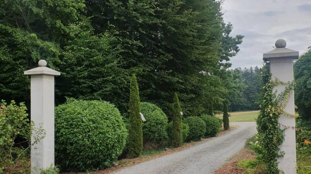 Der liebevoll angelegte Garten mit Teich, Obstbäumen und Zisterne ist ein Ort der Ruhe. Eine Doppelgarage, eine weitere Einzelgarage, eine überdachte Terrasse, ein Gerätehaus sowie private Zufahrt vervollständigen dieses außergewöhnliche Angebot.