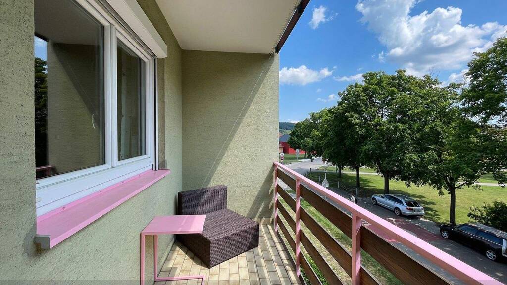 Diese gepflegte, komplett möblierte 2-Zimmer-Wohnung befindet sich im 2. Stock (ohne Lift) eines ruhig gelegenen, wärmegedämmten Wohnhauses aus dem Jahr 1981.