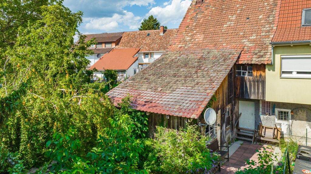 Die hier angebotene Doppelhaushälfte befindet sich auf einem ca. 573 m² großen Grundstück, rückversetzt in einer Sackgasse im beliebten Stadtteil Allmannsdorf. Das Haus wurde ca. 1750 erbaut und ist sanierungsbedürftig, sowie teilweise schon entkernt. Es besteht kein Denkmalschutz, sodass Sie diesbezüglich in der Gestaltung nicht eingeschränkt sind. Das Haus ist nicht unterkellert und verfügt über zwei Vollgeschosse und ein Dachgeschoss. Eine Besonderheit ist ein Zimmer im Erdgeschoss, welches vor vielen Generationen bei der Teilung der Häuser dieser Seite zugeordnet wurde, aber außerhalb der eigentlichen Grundstücksgrenze liegt. An das Wohnhaus schließt ein Holzschuppen an, der über einen Laubengang verfügt, welche beide mit Schwartenbrettern verkleidet sind. Der ruhige Garten mit altem Baumbestand erstreckt sich in Süd-West-Ausrichtung. Eine Doppelgarage und weitere Parkmöglichkeiten runden das Angebot ab.