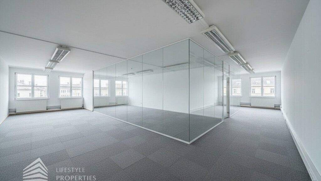 Das Büro verfügt über eine Nutzfläche von ca. 186 m² und befindet sich im 5. OG eines im Jahre 1897 erbauten Altbauhauses, welches sich in einem sanierten Zustand befindet. Beim Betreten des Büros steht man direkt im ca. 25 m² großen Vorraum, dieser mit dem angrenzenden Büro geteilt ist. Beim Eingang befindet sich der ca. 28 m² große Empfang. Durch einen ca. 13 m² langen Gang gelangt man zu den einzelnen Büroräumen. Auf der rechten Seite des Ganges befindet sich ein Sozialraum mit einer Teeküche, die Toiletten für die Damen und Herren. Durch einen weiteren Vorraum erreicht man den Serverraum und das Besprechungszimmer. Die Fläche des Heizraumes wird auf vier Einheiten aufgeteilt. Sollten für die Büroräume Glaswände benötigt werden, erhöht sich der m² Preis der Nettomiete um 2,50.- Euro. Die gesamten Räume sind klimatisiert. Bei der Raumaufteilung kann der Mieter noch seine Wünsche äußern. Die Infrastruktur dieser Immobilie ist hervorragend. In nur wenigen Gehminuten kommen Sie zum Stadtzentrum. Mit den öffentlichen Verkehrsmitteln erreichen sie die Büroeinheiten mit der U-Bahn Linie 1 und 4, Station Schwedenplatz. In unmittelbarer Nähe finden Sie Einkaufsmöglichkeiten sowie Gastronomiebetriebe.