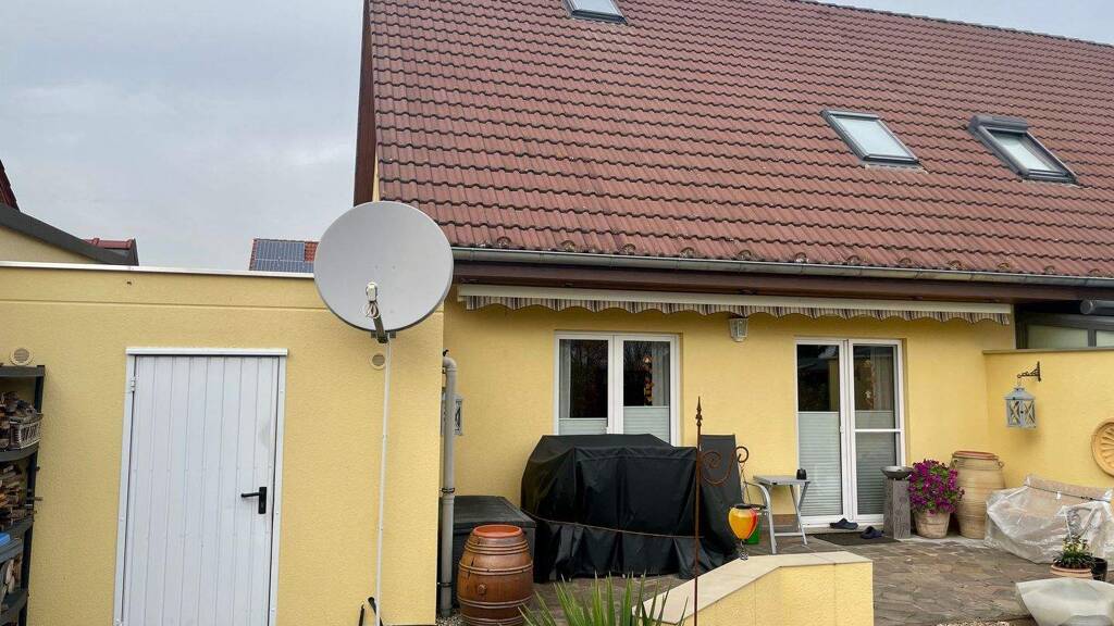 Das gepflegte Haus mit der sehr großzügigen Sonnenterrasse bietet perfekte Süd/West Ausrichtung und ungestörte Idylle unmittelbar an einem Gartengrundstück und Feldrand. Hier lassen sich künftig zahllose Sonnenstunden bis zum Sonnenuntergang genießen.