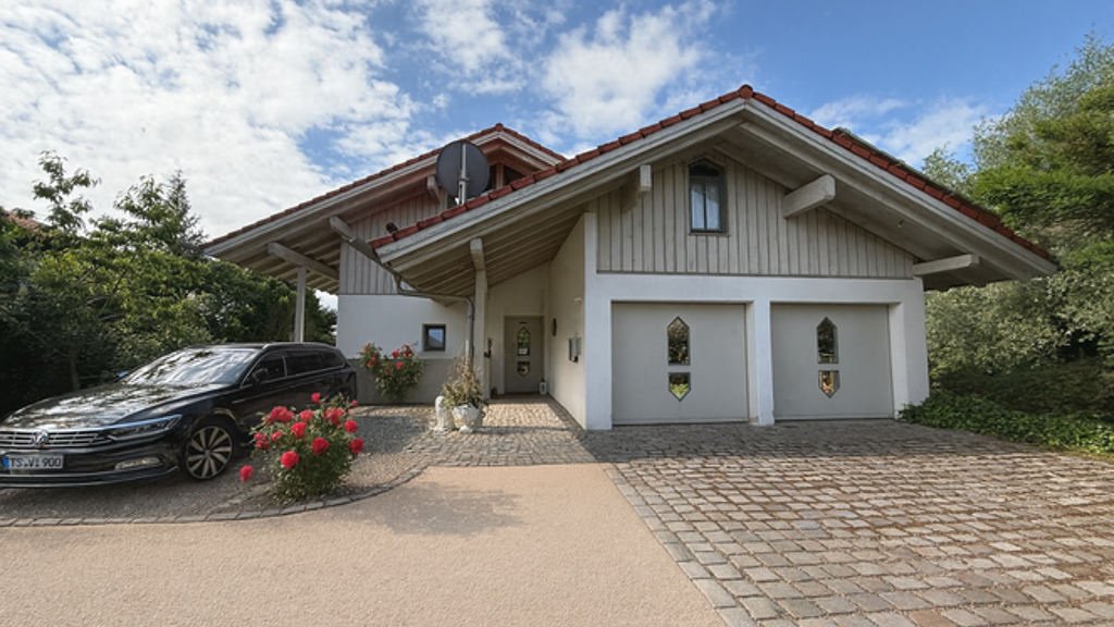 Doppelgarage mit elektrischem Tor, fünf zusätzliche Stellplätze