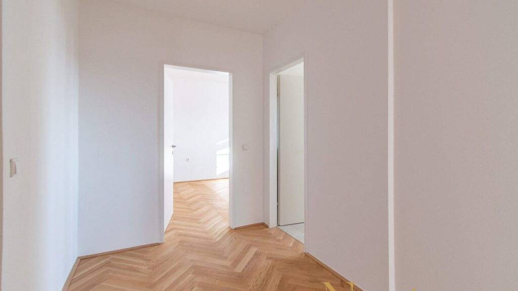 Beim Betreten der Wohnung gelangt man zunächst in einen Vorraum, von dem aus das separate WC erreichbar ist. Vom Vorraum aus führt ein offen gestalteter Übergang in einen weiteren Vorraumbereich, von dem aus alle weiteren Räume begehbar sind.