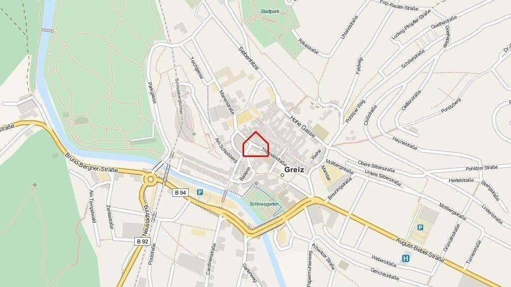 Das Ladenlokal befindet sich in allerbester Geschäftslage der Kreisstadt Greiz, am Puschkinplatz und ist als Eckladen ausgebildet. Dieser verfügt über 4 Schaufenster, 2 davon zeigen zum Puschkinplatz bzw. zur Thomasstraße, 2 weitere weisen zur Straße Am Markt hin bzw. Am Puschkinplatz.