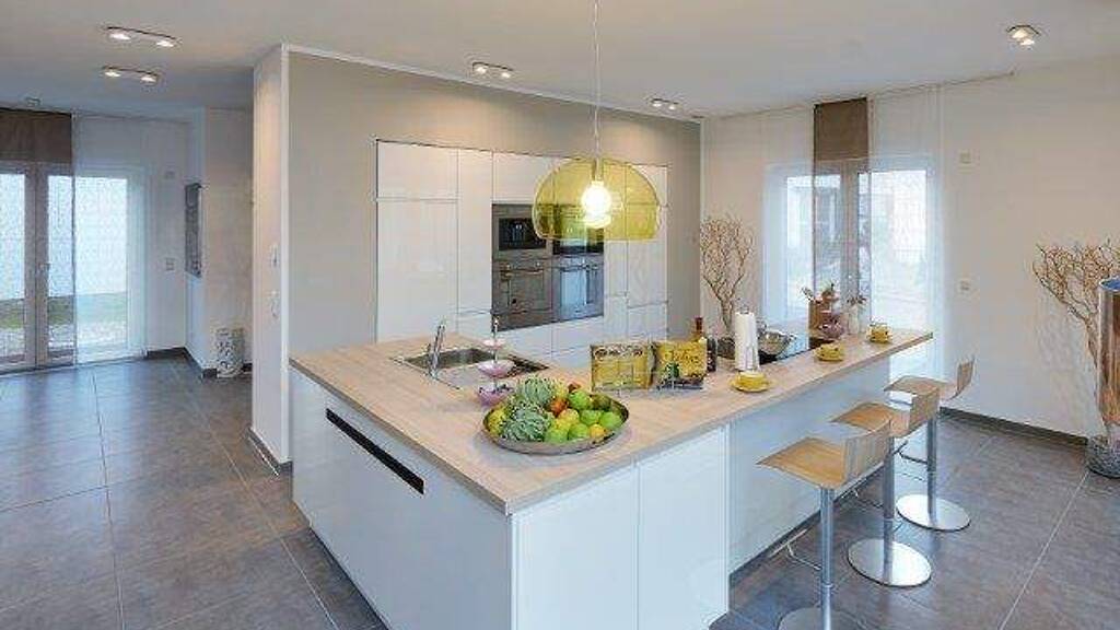 An Platz mangelt es in diesem Bungalow ganz sicher nicht! Denn auf 176,91 m² lässt es sich im Eigenheim mit dem Plus an Komfort wohnen. So begeistert bei diesem Bungalow vor allem der moderne, offene Wohn-Ess-Bereich und die großzügige Küche, die dank zwei Fensterflächen mit jeder Menge Tageslicht versorgt wird. Ebenso bietet der Bungalow mit den zwei quadratischen Kinderzimmern und einem Elternschlafzimmer ausreichend Rückzugsmöglichkeiten für jedes Familienmitglied - deinen individuellen Einrichtungsideen sind hier kaum Grenzen gesetzt. Und auch im Bad wird Komfort definitiv großgeschrieben! Ergänzt wird das Raumkonzept durch ein kleineres Gäste-WC mit Dusche sowie einen Hauswirtschaftsraum, in dem sich die Hausarbeit mit ausreichend Platz verrichten lässt.