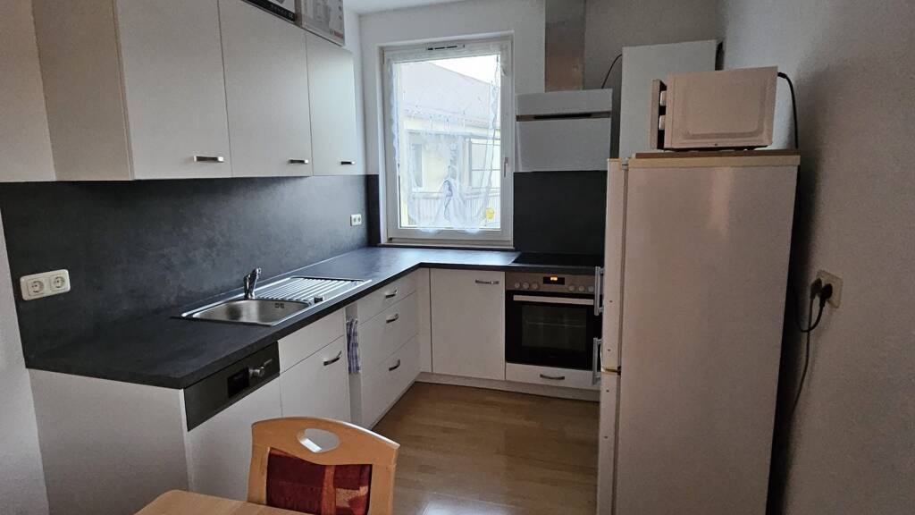 Gesicherter Parkplatz, Tageslichtbad, Balkon, Zur Wohnung gehören zweii Schlafzimmer, ein großes Wohnzimmer mit Balkon, ein Flur, ein Tageslichtbad mit Badewanne, eine Küche sowie ein Kellerraum und ein Trockenboden. Für Ihren PKW steht ein gesicherter Stellplatz im Innenhof zur Verfügung.