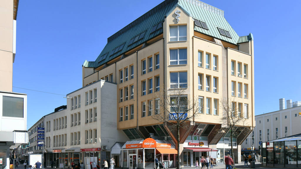 Der aufgrund seiner exponierten Lage von weitem sichtbare Gebäudekomplex mit sechs Etagen ist über eine großzügig gestaltete Eingangspassage barrierefrei über zwei Aufzüge zu erreichen. Das Gebäude wird überwiegend von Fachärzten und medizinischen Dienstleistungsbetrieben genutzt. Im Erdgeschoss befinden sich zudem weitere Einzelhandels-, Gastro- und Dienstleistungsunternehmen (u.a. WSW, Diabetes-Fachgeschäft, Café)
