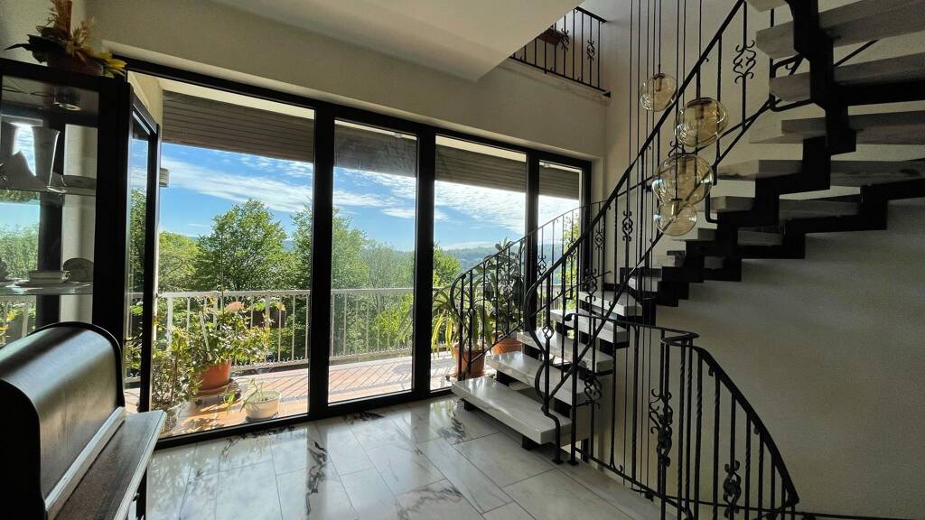 Vom Wohnbereich genießt man einen einmaligen, herrlichen Fernblick über die Stadt. An den Essbereich schließt sich eine großzügige Südterrasse an. Die Morgensonne genießt man von dem an den Wohnbereich grenzenden Balkon. Von der Küche gelangt man in einen großzügigen Hauswirtschaftraum, von welchem der rückwärtige Grundstücksbereich zugänglich ist.