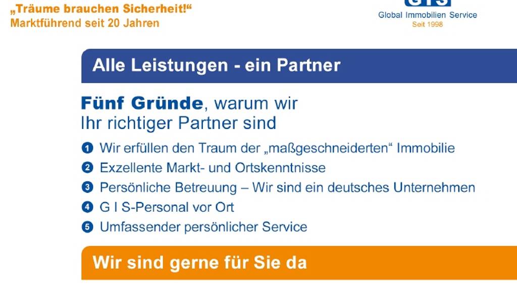 Weitere ausfĂĽhrliche Informationen finden Sie auf unserer Internetseite www.gisimmobilien.de. Und lassen Sie sich von unseren neuen, individuell anpassbaren, HausentwĂĽrfen in der Bildergalerie inspirieren.