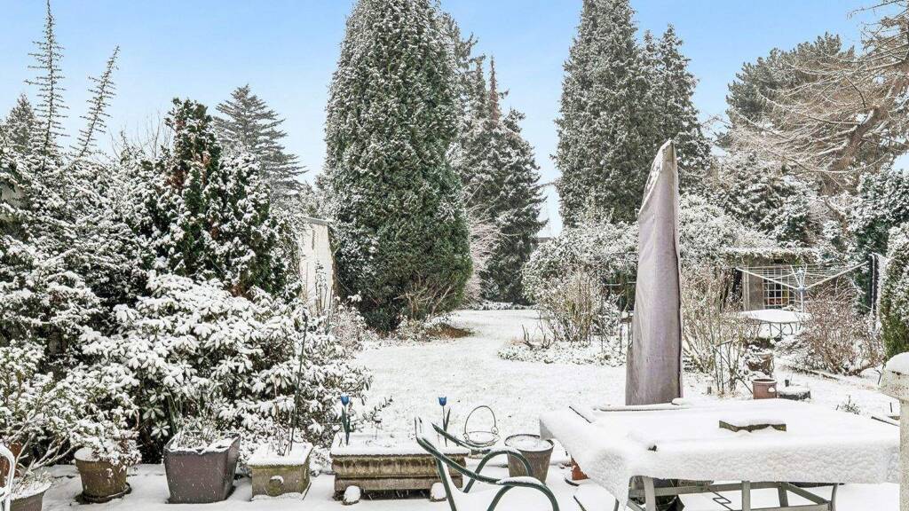 Derzeit bildet das Erdgeschoss eine eigenständige Wohneinheit mit drei Zimmern, einer Küche und einem Badezimmer, welches im Jahr 2005 renoviert wurde. Zudem bietet das Erdgeschoss eine zum Vorgarten hin ausgerichtete Südterrasse und einen direkten Zugang zur großen Nordterrasse sowie zum Garten. Das Objekt wird durch die aktuellen Eigentümer bewohnt und verfügt im 1. Obergeschoss über einen geräumigen Wohn-/Essbereich mit Zutritt zum Südbalkon, eine Wohnküche und ein Gäste-WC. Im 2. Obergeschoss befinden sich drei Schlafzimmer und ein Badezimmer. Das Dachgeschoss wurde bislang nicht ausgebaut. Die einladende Einfahrt zu den zwei massiv errichteten Garagen kann mit dem großzügigen angelegten Vorgarten vielseitig genutzt werden. Der weitläufige Garten mit großer Terrasse bietet Privatsphäre mit viel Platz zum Austoben, Grillen und Entspannen. Aufgrund seiner Größe eröffnet der Garten umfangreiche Gestaltungsspielräume.