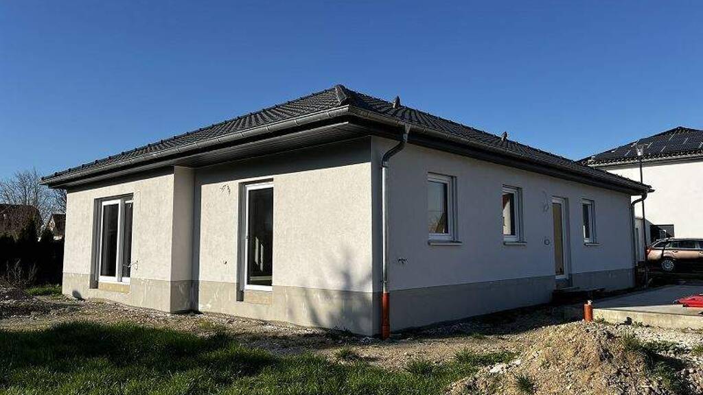 Ausstattung: - 122m² Wohnfläche: 2 Schlafräume, Gäste-WC, Küche, Bad, Wohnzimmer, Diele - Effizienzklasse: KfW 40 - sparsame Luft-Wasser-Wärmepumpe, Warmwasserspeicher - Fußbodenheizung - engobierte Tondachsteine - weiße Kunststofffenster mit 6 Kammerprofil, innen weiß und außen basaltgrau Hebeschiebeelement im Wohnzimmer - Rollläden an allen Fenstern - bodengleiche Dusche im Bad mit Edelstahl Duschrinne - Malerarbeiten mit weißem Anstrich - Sanitärausstattung weiß - Innentüren weiß