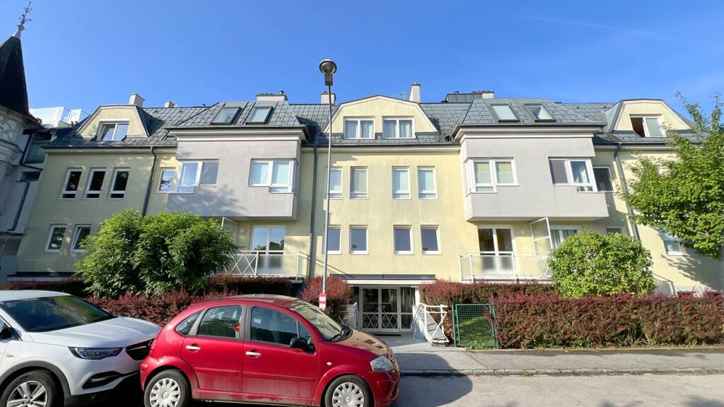Die Wohnung befindet sich in Stiege 2 eines im Jahr 1990 errichteten Wohnhauses auf Eigengrund, gelegen zwischen Babenbergergasse und Wisentgasse. Der Zugang erfolgt bequem über die Tiefgarage und einige Stufen - wahlweise über das Erdgeschoß oder das darunterliegende Gartengeschoß. Über die Wisentgasse ist der Weg zum Eingang kürzer - ebenfalls über eine einige Stufen erreichbar.