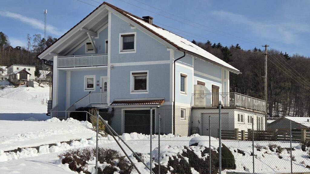 Zur Vermietung steht eine Wohneinheit in einem Wohnhaus, wobei die Wohnung selbst im ersten Stock, dem Dachgeschoß gelegen ist. Die Liegenschaft ist in einem kleinem Dorf und die Gegend ist dort sehr ländlich. Es sind auch ringsum Bauernhöfe vorhanden, welche auch noch im Betrieb sind.