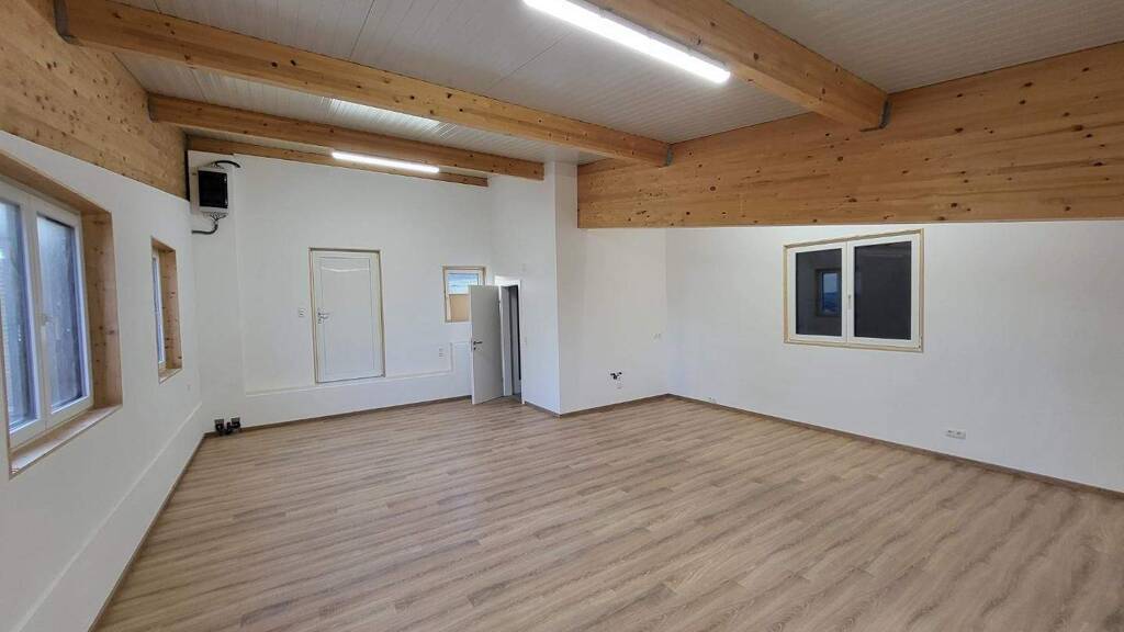 Das Objekt wurde 2020 in Holzriegelbauweise errichtet. Es handelt sich um einen Erstbezug. Verlegt wurde Laminatboden, das Bad mit Dusche und das WC sind verfliest. Eine Teeküche wird vom Eigentümer noch eingebaut. Die Gesamtanlage ist mit einer Alarmanlage gesichert. Für KundInnen und MitarbeiterInnen stehen insgesamt 5 KFZ-Parkplätze zur Verfügung. Die Grünfläche vor dem Eingang kann auch von KundInnen und MitarbeiterInnen genutzt werden.