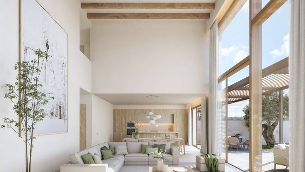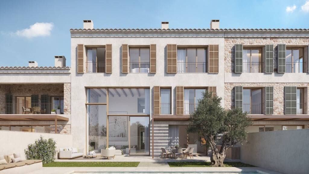 Dieses exquisite Eckreihenhaus, Teil einer exklusiven Anlage mit drei Residenzen im Herzen von Santany?, verk?rpert den Charme einer traditionellen Finca und bietet gleichzeitig h?chste moderne Standards. Die Fertigstellung ist f?r Anfang 2026 geplant. Das Anwesen bietet eine nach S?den ausgerichtete Lage mit bezaubernder Aussicht auf die Altstadt. Das durchdachte Design mit Naturstein und Holzb?den verbindet Eleganz und Komfort nahtlos und schafft ein raffiniertes und dennoch einladendes Ambiente.