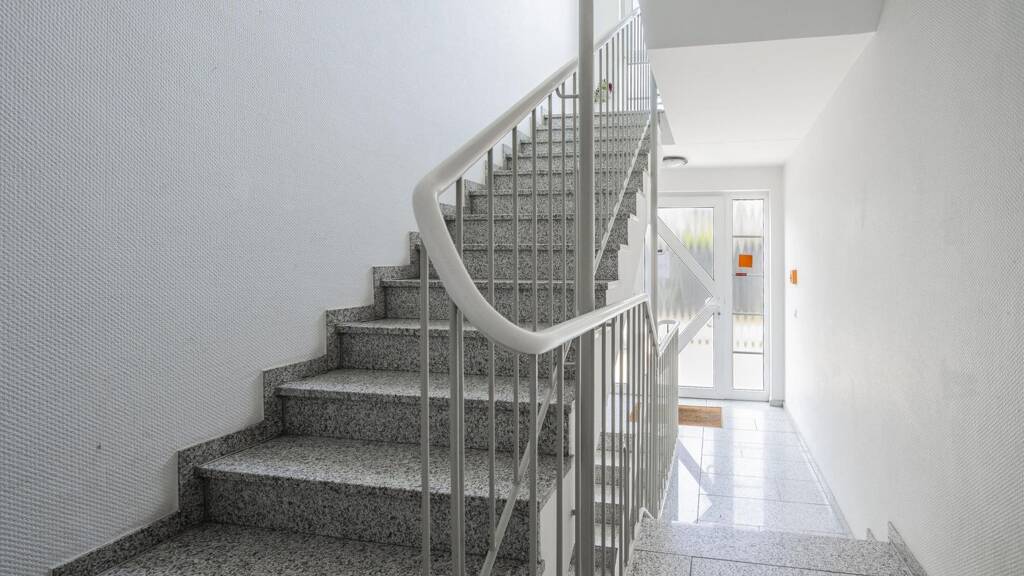Hinunter geht es in die Souterrain-Wohnung. Eine gemĂĽtliche WohnkĂĽche sowie ein Schlafzimmer und Badezimmer runden das Angebot ab.