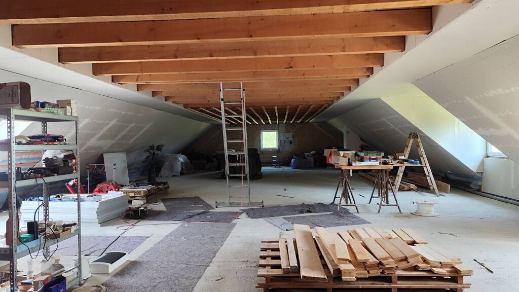 1. Pension: Derzeit befinden sich 6 separate Zimmer inkl. Badezimmer im Obergeschoss. Auf dieser Etage können weitere 6 Zimmer inkl. Badezimmer entstehen. Der Rohbau ist bereits abgeschlossen.
