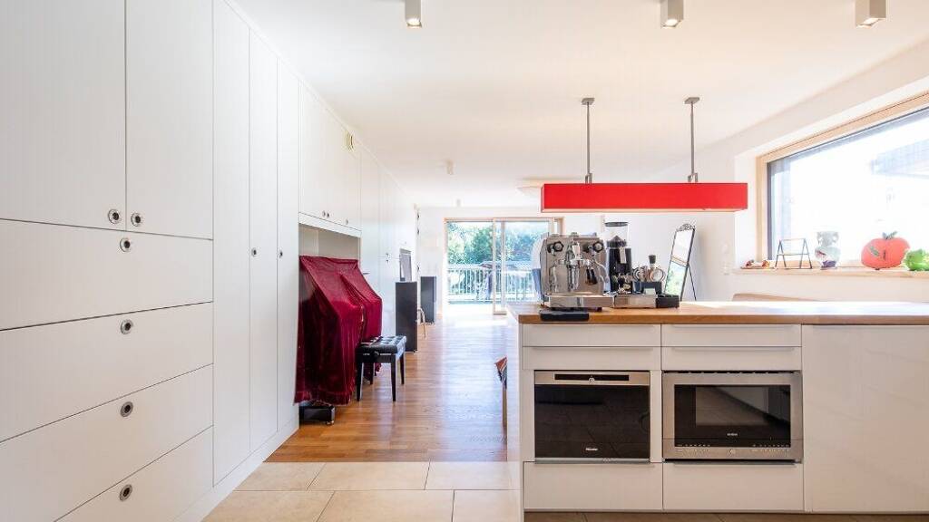 "Was für ein schönes Haus - hier möchte man sofort einziehen", kommt es durch den Sinn, wenn man erst einmal das Haus betritt. Kein Wunder: Das Haus stammt aus Architektenhand und wurde erst vor wenigen Jahren erbaut. Helle Sichtachsen und durchdachte Blickwinkel wohin man schaut. Jeder m2 Verkehrsfläche ist hier geplant. An hochwertiger Tischlerarbeit wurde nicht gespart. Und dabei ist alles auch noch unglaublich praktisch konzipiert und maßgeschneidert.