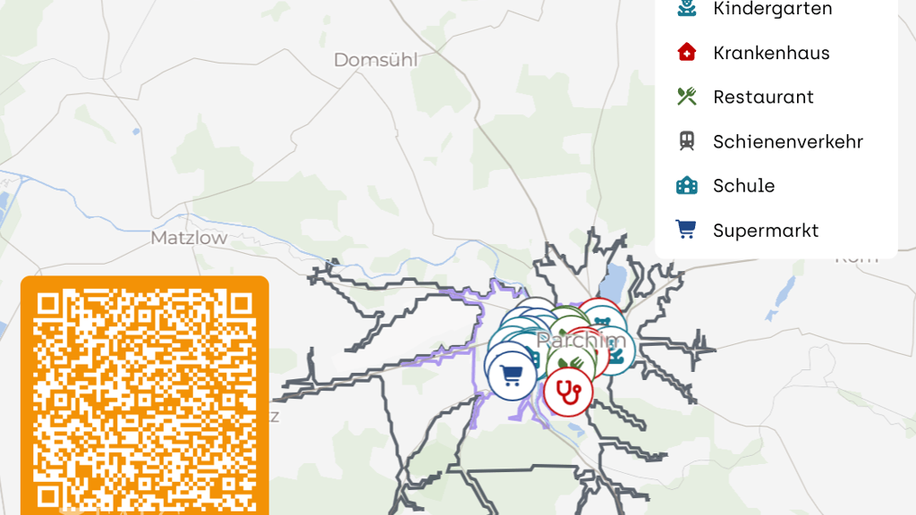 Die Wohnung liegt im Stadtteil Weststadt von Parchim, in fußläufiger Nähe zu Geschäften des täglichen Bedarfs, Apotheken und Nahversorgern. Die Anbindung an das städtische Verkehrsnetz ist solide - sowohl in Richtung Innenstadt als auch zu überregionalen Wegen.