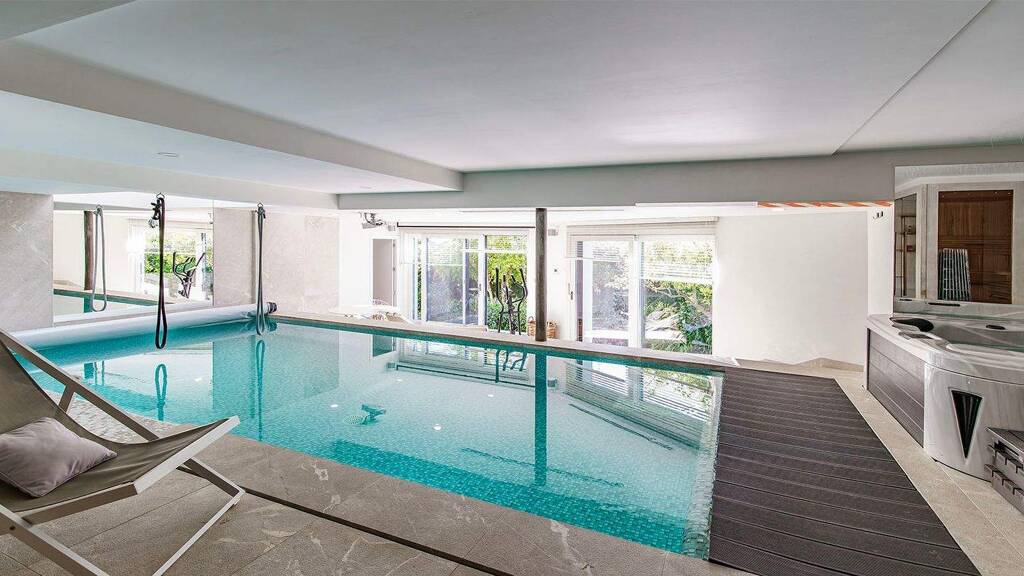 Das Untergeschoss begeistert mit einem privaten Spa: Indoorpool, Jacuzzi, Sauna, Fitnessraum, Bad und ein weiteres Schlafzimmer sorgen für pure Entspannung.