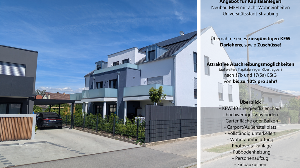 Neubau KFW 40 QNG Energieeffizienzhaus mit acht Wohneinheiten in der Kernstadt Straubing!