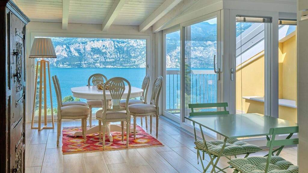 Dieses charmante Attico befindet sich in einer der begehrtesten Lagen von Malcesine und bietet einen spektakulären Seeblick, der sich bis zur Scaligerburg erstreckt.