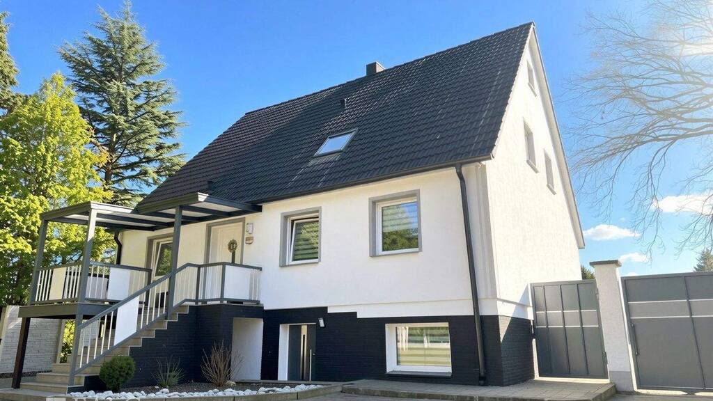 Dieses beeindruckende Einfamilienhaus überzeugt durch seine großzügigen Dimensionen, seine vielseitige Nutzbarkeit sowie die besondere Lage am Feldrand mit einem Höchstmaß an Privatsphäre - und dennoch nur ca. 3 km von der Innenstadt entfernt. Das im Jahr 1972 in hochwertiger Fertigbauweise des renommierten Herstellers OKAL errichtete Haus überzeugt durch seine solide und langlebige Bauqualität und wurde in den vergangenen Jahren umfassend modernisiert sowie energetisch optimiert. Mit einer Energieeffizienzklasse B präsentiert sich die Immobilie heute in einem zeitgemäßen und nachhaltigen Zustand. Auf einem außergewöhnlich großen Grundstück von 2.649 m² eröffnet sich Ihnen ein wahres Paradies mit zahlreichen Nutzungsmöglichkeiten - ob für Familien, Selbstständige, Hobbyhandwerker oder Tierliebhaber. Ein weiterer Pluspunkt ist die vorhandene Solarthermie-Anlage, die sowohl die Heizungsanlage unterstützt als auch zur Warmwasseraufbereitung beiträgt. Dies sorgt nicht nur für eine verbesserte Energieeffizienz, sondern auch für langfristig reduzierte Betriebskosten.